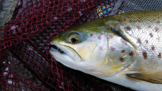 I use a stomach pump on trout that I release, to see what they are eating. The fish had about a dozen buzzer pupae in him. Each drift lasted no longer than 5 minutes and the fish were hugging the edges of the reeds. After about another 8 or so drifts I landed one more rainbow of similar size to the first one, but I lost four more in the reeds.