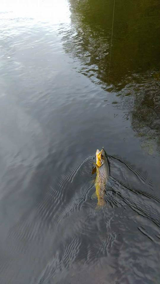 Peter continued to fish the area at the weir, but I went back down stream to see if there were any other fish rising. Sure enough Olives started to hatch and fish started to rise, I changed to a single dry and 0.09 tippet. The fish took the dry nice and easy, its important not to strike hard into these fish as you will break every time. Lifting your rod gently is good enough to set the hook and normally once you have connected with the fish the light leader should hold.